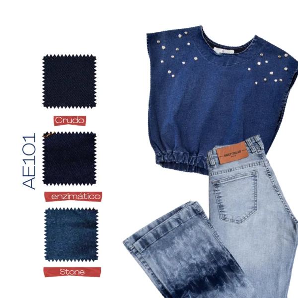 Este tejido algodón/poliéster/elastano color índigo trama negra. Resistente a procesos de lavadero en general. Para láser sugerimos hacer pruebas de intensidad. No recomendamos para rotura. Es ideal para quienes quieren agregar a su colección prendas super skinny como top corseteros, pantalones.